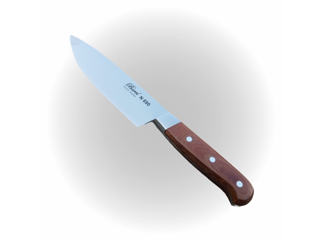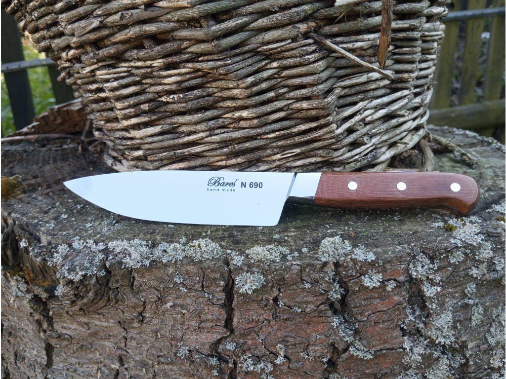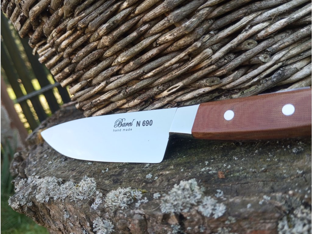Na tento nůž používáme kvalitní pracovní ocel N690, která dosahuje tvrdosti 60HrC.Na střenky nožů standartně používáme tropické dřevo WENGE nebo TEXTIT oranžové barvy, ale protože děláme každý nůž ručně, není problém materiál změnit za kterýkoliv jiný vhodný jako například různé druhy dřevin či umělé hmoty jako je G10. Pokud se rozhodnete pro jiný materiál ,je třeba počítat s prodloužením doby dodání a telefonickou domluvou.