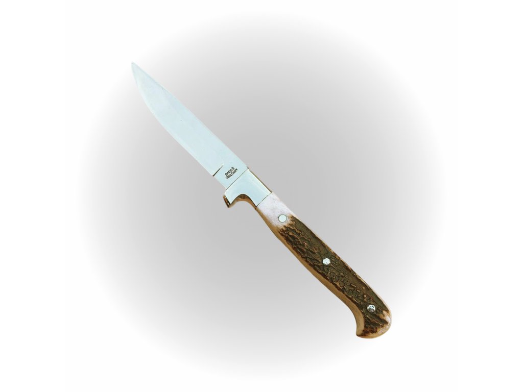 Na tento nůž používáme skvělou pracovní ocel 1.4034,která dosahuje tvrdosti 57HrC. Čepel má délku 100mm a celková délka nože je 215mm. Jako tradiční materiál na střenku používáme jelení paroh ,ale protože děláme každý nůž ručně, není problém materiál změnit za kterýkoliv jiný vhodný jako například různé druhy dřevin či umělé hmoty jako je G10. Pokud se rozhodnete pro jiný materiál ,je třeba počítat s prodloužením doby dodání a telefonickou domluvou.