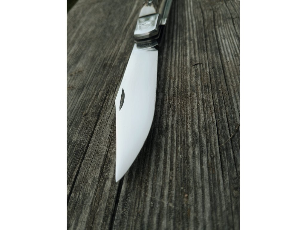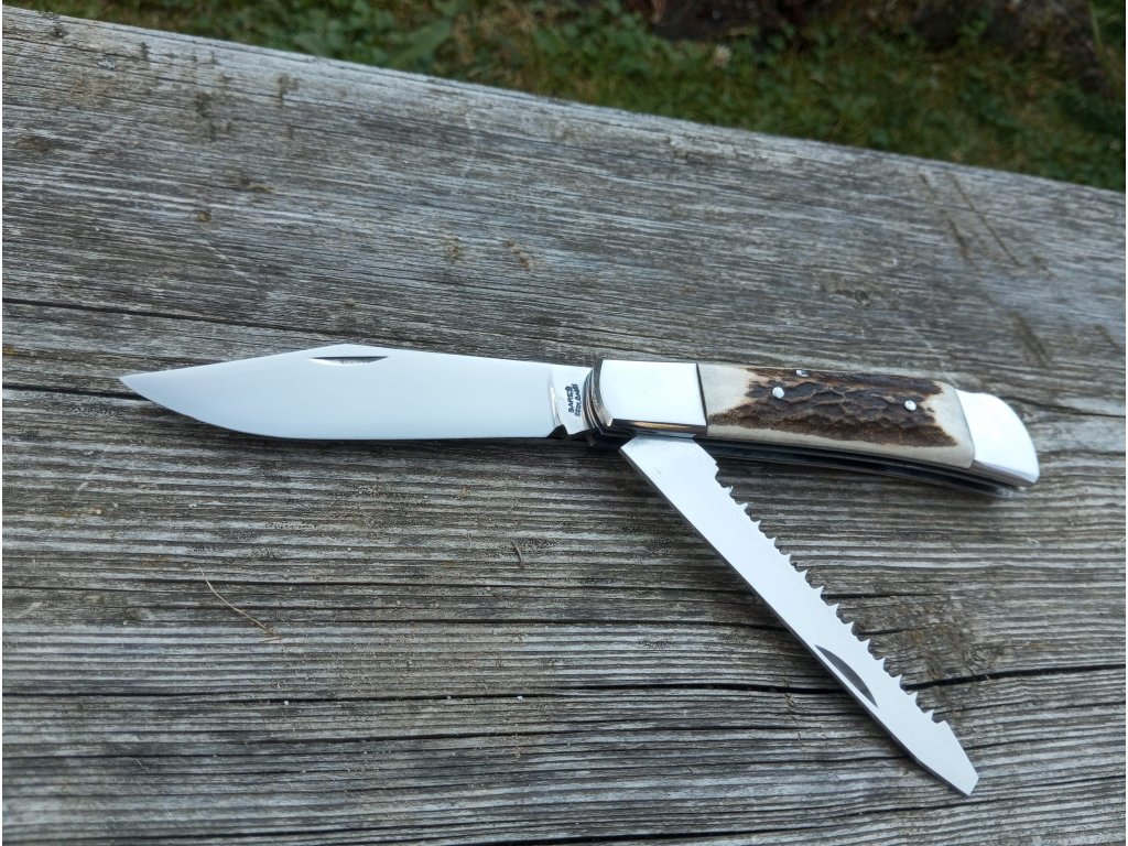 Na tento nůž používáme skvělou pracovní ocel ELMAX, která dosahuje tvrdosti 61HrC. Čepel má délku 100mm a celková délka nože je 220mm. Jako tradiční materiál na střenku používáme jelení paroh ,ale protože děláme každý nůž ručně, není problém materiál změnit za kterýkoliv jiný vhodný jako například různé druhy dřevin či umělé hmoty jako je G10. Pokud se rozhodnete pro jiný materiál ,je třeba počítat s prodloužením doby dodání a telefonickou domluvou.