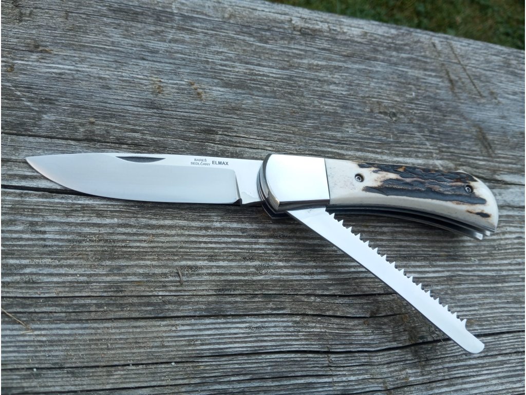 Na tento nůž používáme skvělou pracovní ocel ELMAX, která dosahuje tvrdosti 61HrC. Čepel má délku 110mm a celková délka nože je 240mm. Jako tradiční materiál na střenku používáme jelení paroh ,ale protože děláme každý nůž ručně, není problém materiál změnit za kterýkoliv jiný vhodný jako například různé druhy dřevin či umělé hmoty jako je G10. Pokud se rozhodnete pro jiný materiál ,je třeba počítat s prodloužením doby dodání a telefonickou domluvou.